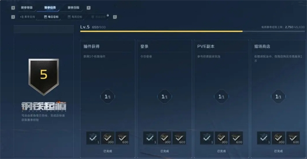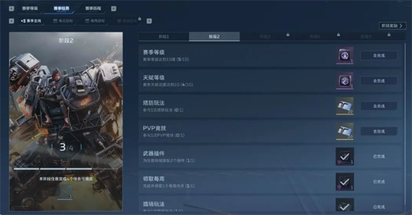 赛季主线和每周目标:赛季主线会给大量的插件,每周目标会给大量的经验。