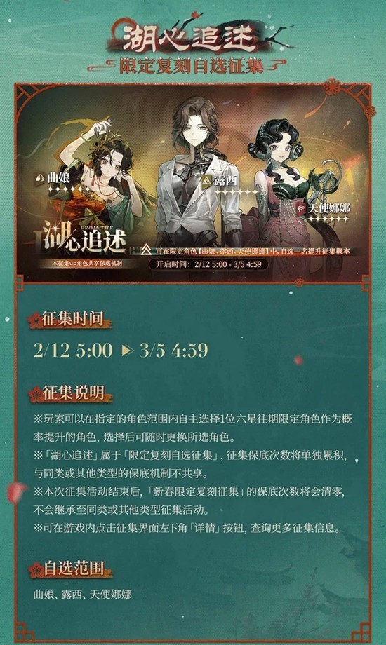 自选池:萌新和补队伍角色的抽,其余推荐度一般