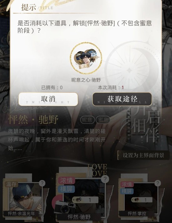 光与夜之恋萧逸驰野新卡转盘大奖 昵意之心主页设置攻略
