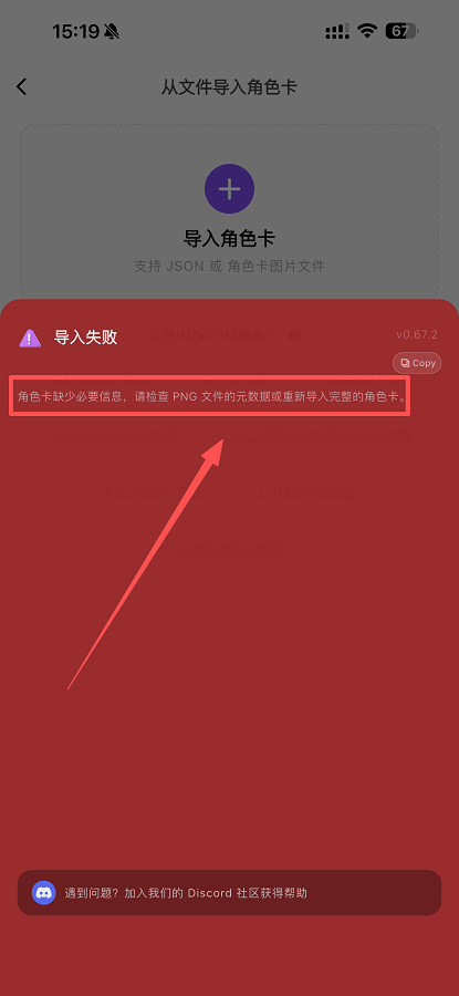 若提示如下内容则为PNG图片内不包含任何文本块,需换其他PNG图片导入。