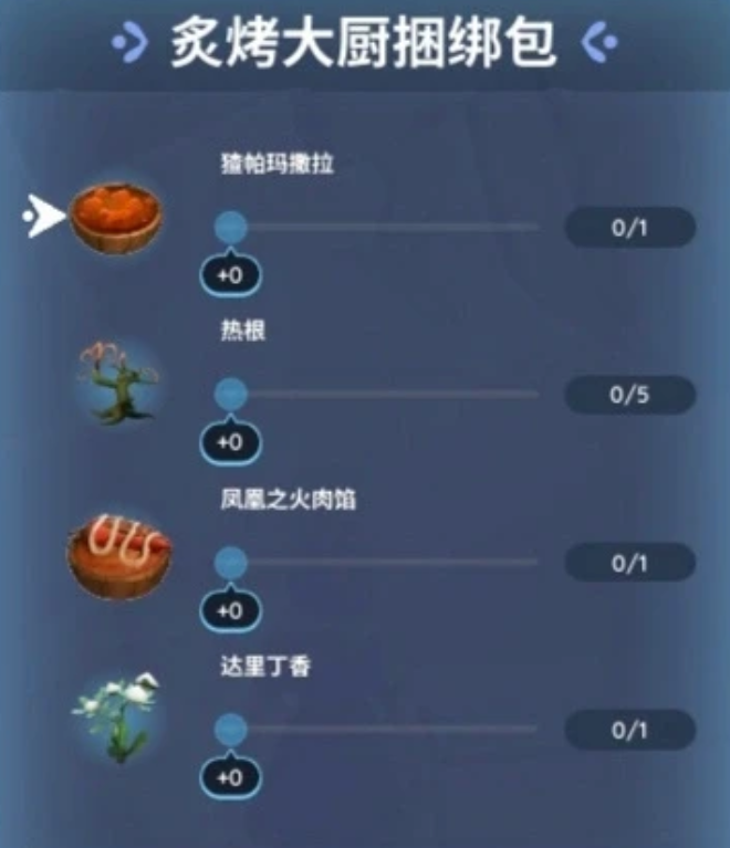 猹帕玛撒拉、热根、凤凰之火肉馅、达里丁香