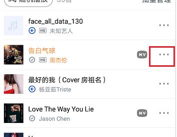 2、选择想要设置铃声的音乐,点击歌曲末尾的“。。。”图标。