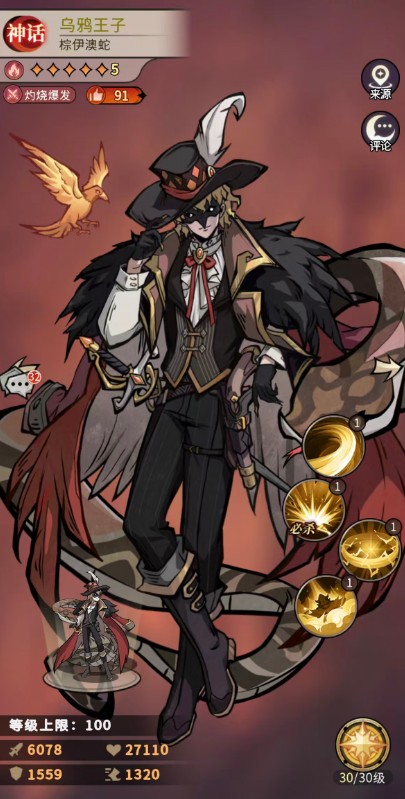 乌鸦王子达到了红色卡牌的强度,那么作为神话品质当中的一员,其实很多玩家觉得他的能力是可以替换前面的小丑菲洛,主要是因为什么?就要从幻灵召唤师乌鸦王子怎么样的解答当中了解,因为这个蛇灵身上其实也是有足够的灼烧能力,但是他的另一类能力上面就不是减防了,而是带有很强的爆发。
