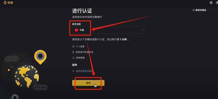 点击立即认证。不过我们这里要改成自己证件上的地址,比如说你用身份件,那你就填“中国”,你用护照就填上护照上的地址就好了。点击【继续】。
