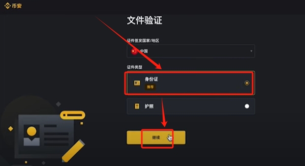 验证你的证件类型。你是什么证件就选择对应的证件,点击【继续】。