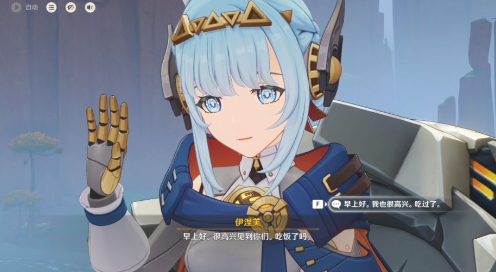 面对快速变化的世界,伊涅芙持续更新着对自身和世界的认知。她的思维模块会收集并分析她的日常见闻,来构筑合理的行为逻辑。比如注意到人们见面时会用“你好”“最近过得怎么样”“吃了吗”开启对话后,她就会尝试在下次交谈中主动运用这些问候语——三句问候语,三倍关怀。相比直接充能,通过食物转换能量的效率较低。但在与朋友聚餐时,伊涅芙的情感模块会对高热量食物产生积极的正反馈。她不喜欢汤汁太多的食物。味道本身对她来说没有太大意义,但是对机械部件可能有害。