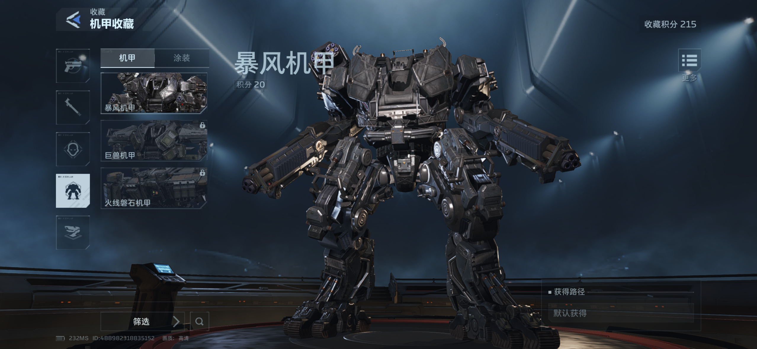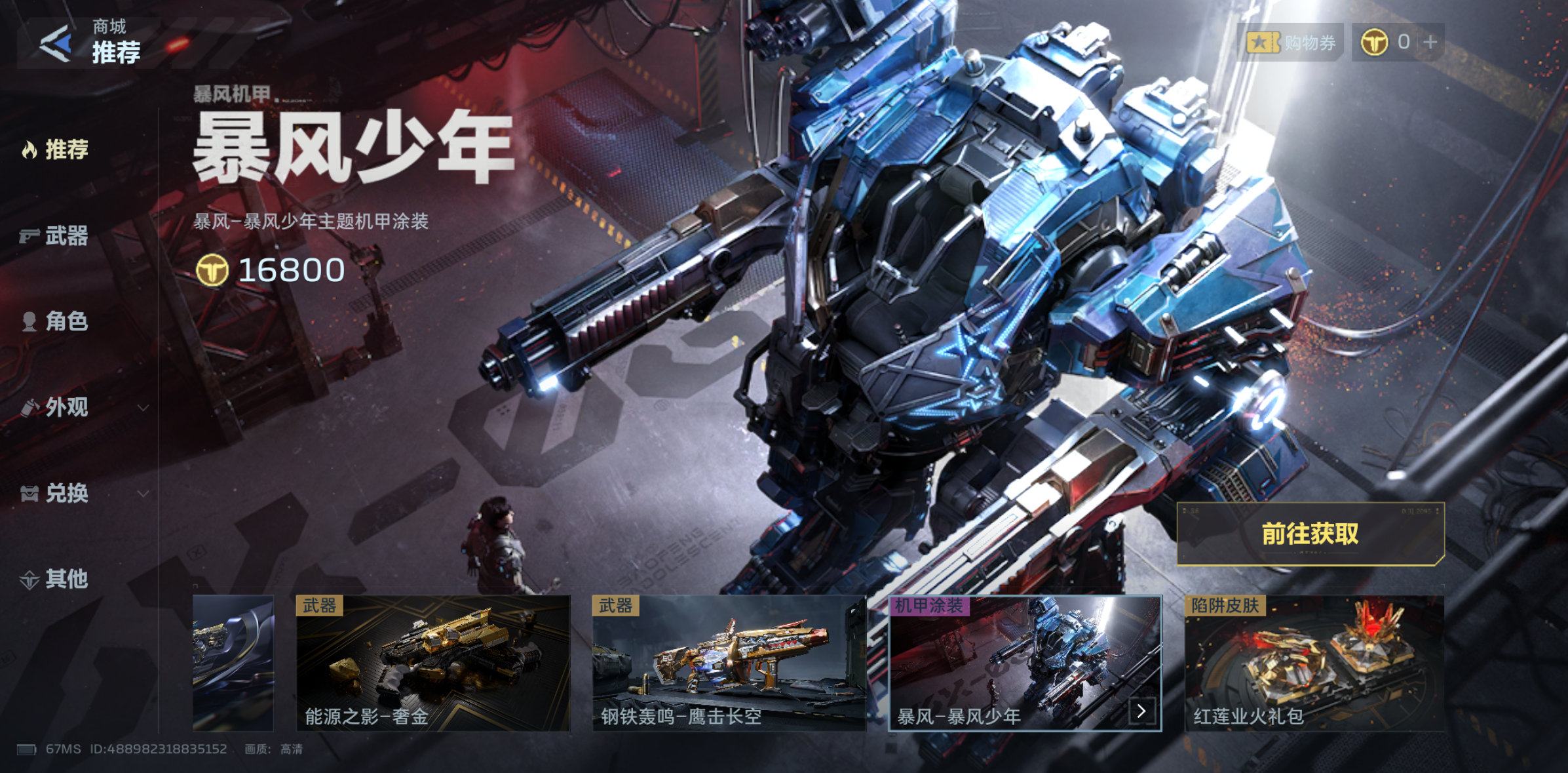 根据当前版本图鉴数据,游戏z共设有3种基础机甲类型与2类涂装方案。目前已实装的涂装包括“暴风机甲-暴风少年”与“火线磐石-陨铁”。但就实际运营进度来看,仅“暴风少年”涂装版本的暴风机甲已在商城上架,定价为16800NZ点。