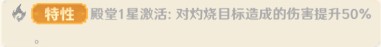 效果:英雄9星解锁50%破甲,殿堂1星获得50%对灼烧目标增伤,史诗1星解锁全队施加灼烧状态持续回合数+1。