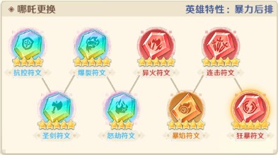 解析:为什么不带带暴怒符文?因为暴焰符文可以给哪吒提供大量的怒气回复一个技能回复4点怒气。