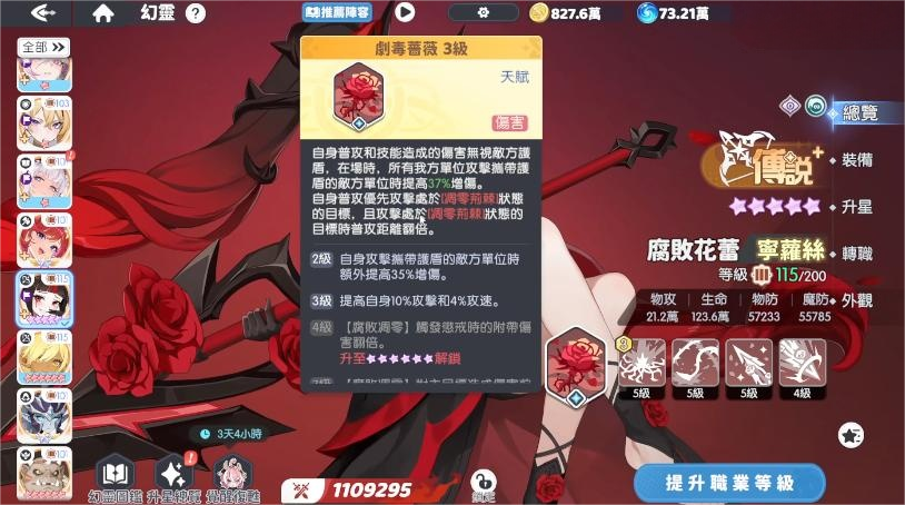 主动技能【剧毒蔷薇】对携带护盾目标额外提升37%伤害,并附加持续状态效果;若目标已处于其他负面状态,则本次伤害将触发翻倍增益,形成深度穿透打击。该技能的伤害穿透效率随角色星级提升而线性增强,进一步放大其成长上限与后期强度。