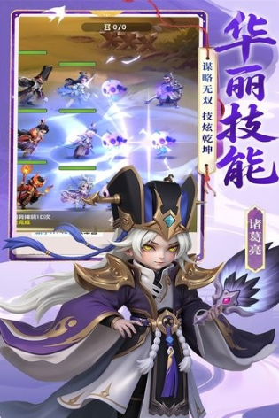 本作主打“轻策略+低门槛+高自由度”的设计理念,涵盖卡牌收集、武将养成、阵容搭配、主城建设、离线挂机及轻度PVP等多元玩法模块。战斗采用竖屏单手操作、自动回合制机制,单局时长控制在三分钟左右,适配通勤、午休等碎片化场景,兼顾新手与资深玩家的不同需求。