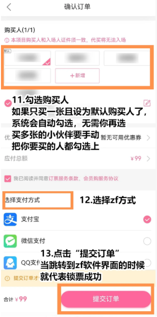 7. 勾选购票人信息并完成支付