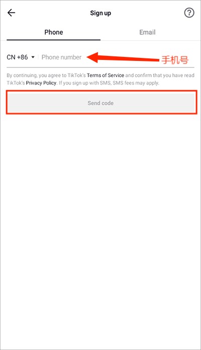 4.通过手机号码或电子邮箱接收验证码,点击"Send code"完成身份核验