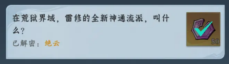 4、在荒狱界域,雷修的全新神通流派,叫什么?绝云