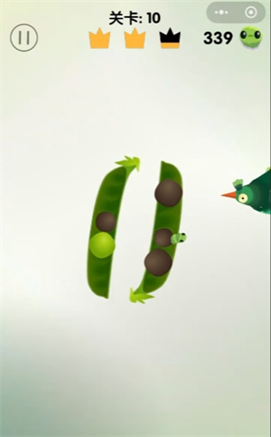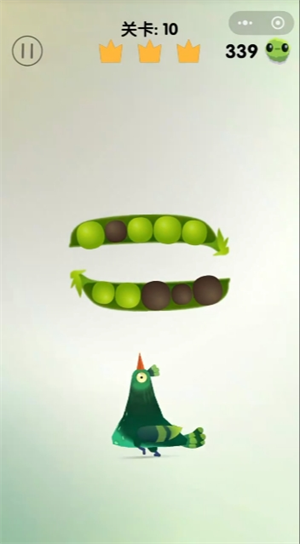 1、观察豆荚的青豆和黑豆位置,瞄准啄掉青豆。