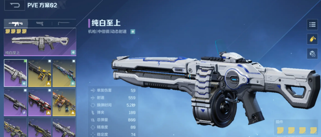 【纯白至上】——团队增益型功能武器 注册即送,初始即具备高续航特性。升级后可激活暴击回血被动效果,并释放战术立场,为范围内队友提升暴击率。该武器插件系统支持跨武器复用,前期投入的强化资源在后期更换主武器时仍可延续使用,降低养成成本。