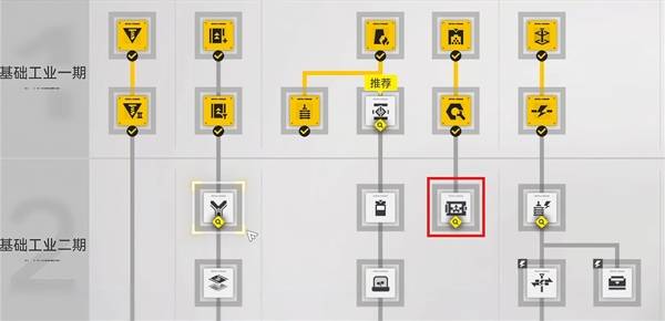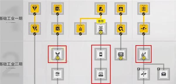 我们只需要顺着新手教程点到二期工业,并且开了以下这几个科技树,就能做出A蓝图的设备。
