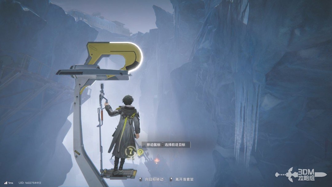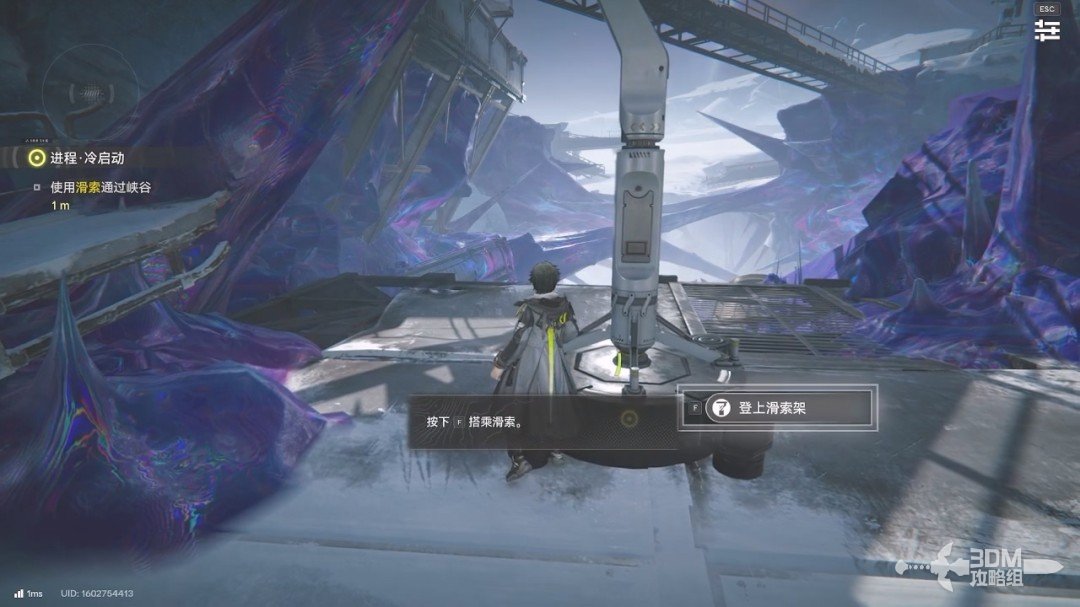 往前走一段路以后前面会有一个滑索,我们按F键可以搭乘滑索。