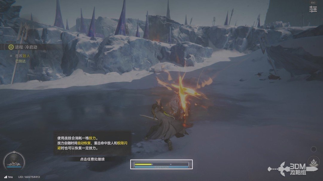 数字1号键可以释放战技,战技需要消耗技力。技力就是我们血条上方的黄条。技力会随着时间恢复,重击和极限闪避也可以恢复。