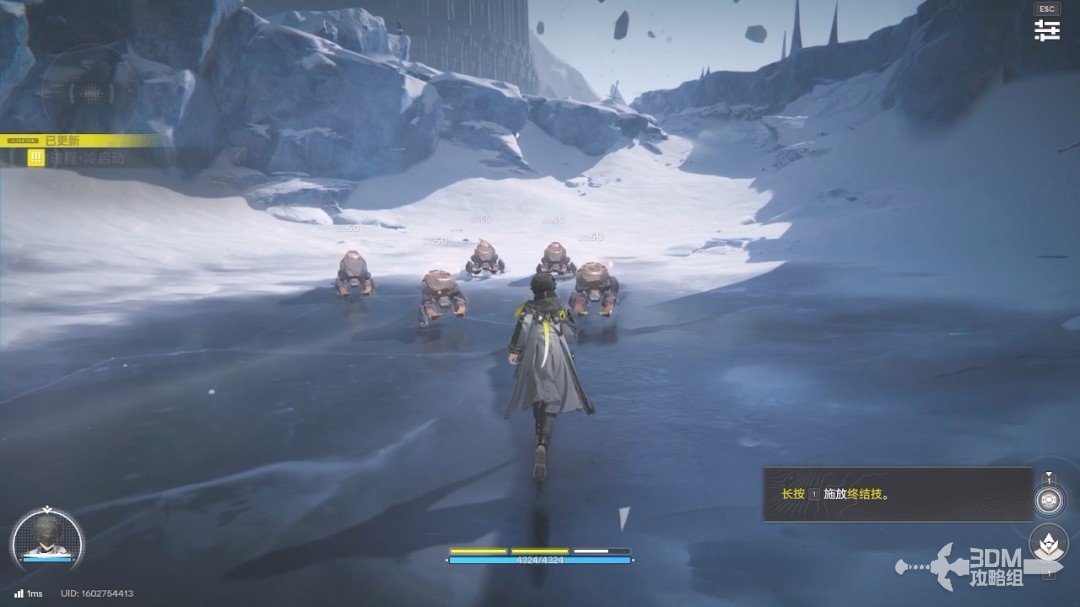 下面还会有终结技,终结技的能量槽就在战技上方,能量满了以后还会闪烁,长按1即可释放。