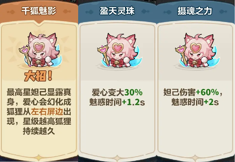 中期:摄魂之力/盈天灵珠 →狐灵惑心 → 回风珠返/爆炸范围。