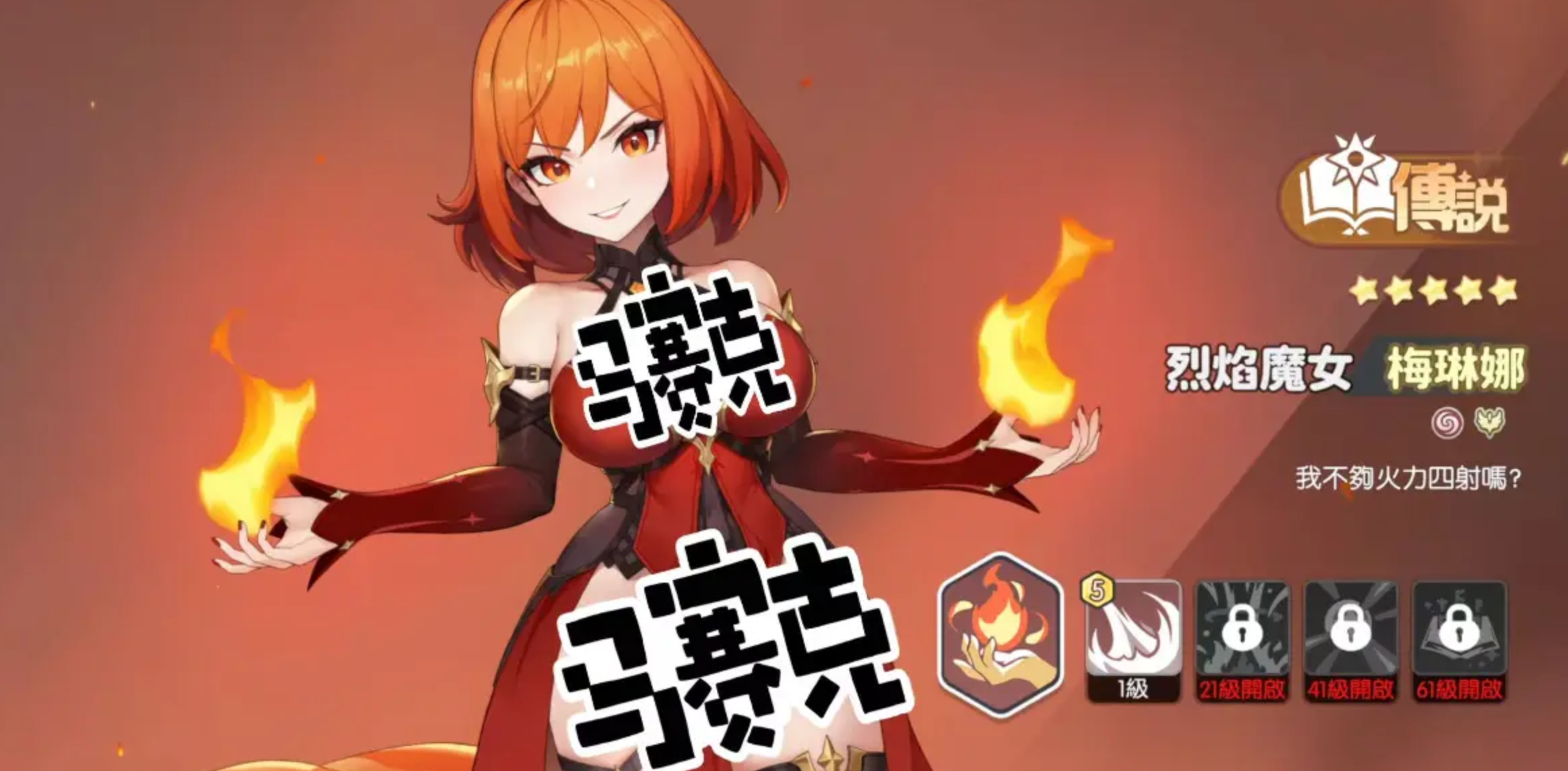 第二位关键角色为梅琳娜,常被玩家简称为“火女”。她在元素队中承担主力AOE与持续伤害输出职责,虽生存能力偏弱,但技能倍率与覆盖率优势显著。该角色初始即开放于新人限定召唤池,抽取概率相对友好。奥博隆妮同为传说品质,通过完成晋升任务即可稳定获取;而芬尼尔则为首充赠礼角色,本体获取无门槛,升星所需紫色同源卡易得,综合培养效率高于多数同期角色,建议优先投入资源提升星级。