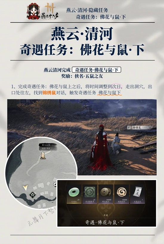 燕云十六声清河隐藏袅袅获得攻略 佛花与鼠怎么做攻略