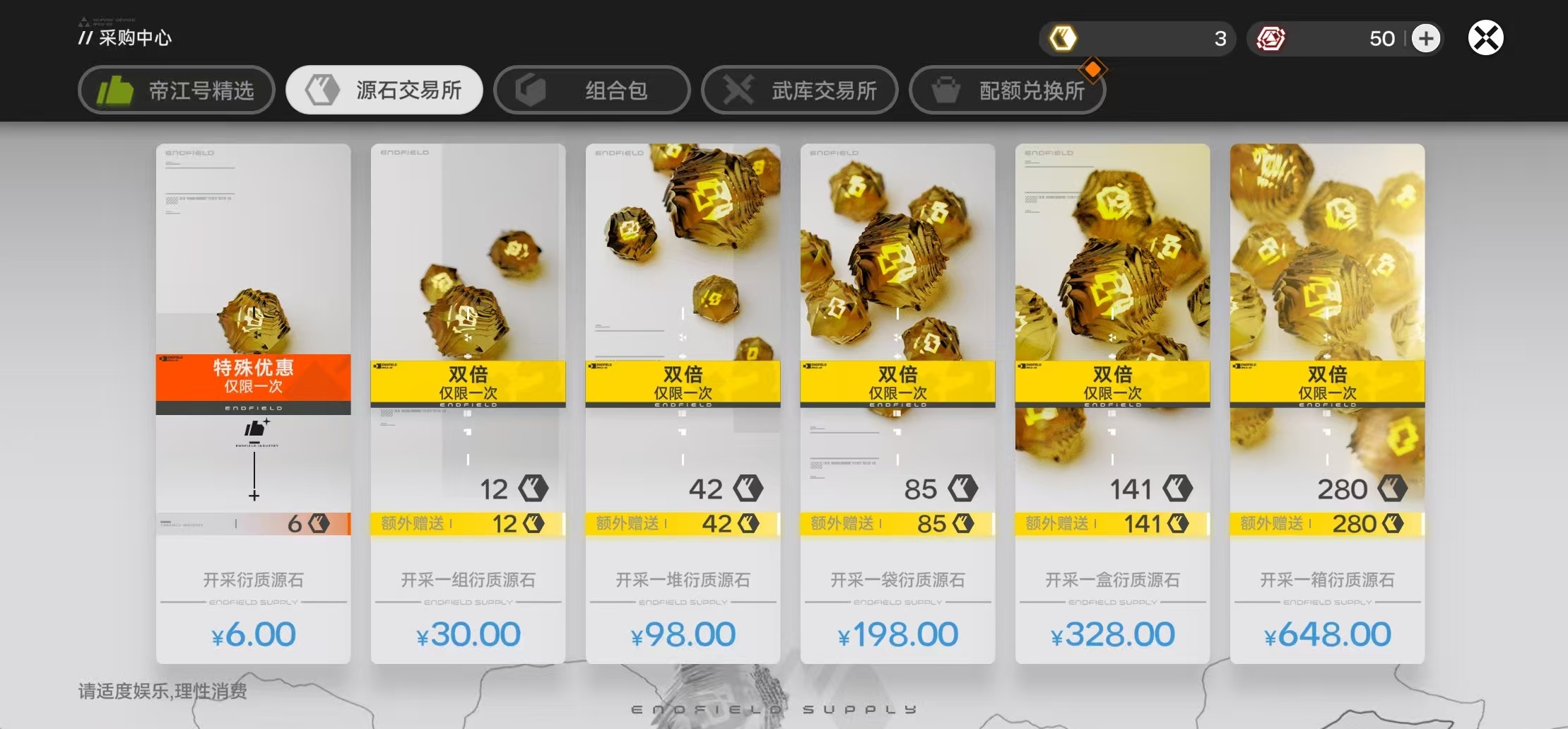 获取渠道方面,前期主要依赖主线剧情推进奖励;开启通行证后,可通过任务链与等级奖励稳定补充;新服开放期间的限时活动亦会设置多阶段衍质源石发放节点,达标即可直接领取。此外,源石交易所提供直接充值入口,首次购买各档位均享有双倍返利,建议分档逐级完成首充,以实现资源积累效率的最大化。