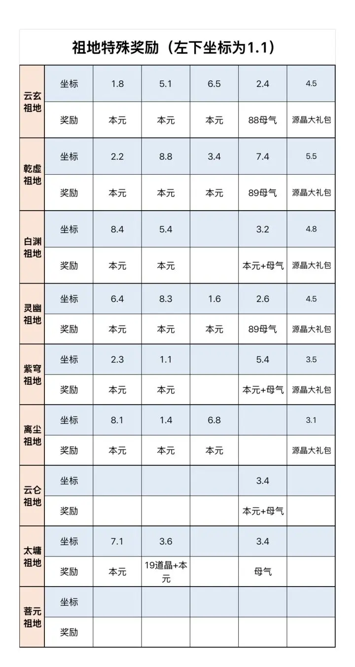 凡人传说祖地中的特殊奖励在元玄祖地、乾虚祖地、白渊祖地、灵幽祖地、紫穹祖地、离尘祖地都有分布,下面为大家列举这些分布于各个地区位置的奖励内容坐标!