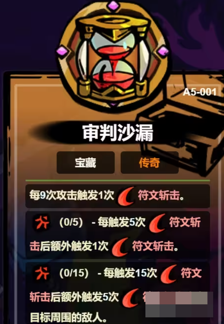 第三件宝藏需根据实际战斗需求灵活选择: • 法力续航向:推荐雷兽之牙或法力宝珠,前者提升生命恢复效率,后者增强法力回复速度,共同缓解长时间战斗中的蓝量压力; • 输出强化向:审判沙漏可提升斩击类技能伤害,眼镜则提高暴击率与暴击伤害,适用于需快速清怪的场景; • 生存强化向:无形之刀提供常驻减伤效果,猎人印记增加最大生命值,适合高威胁Boss战或精英图层挑战。