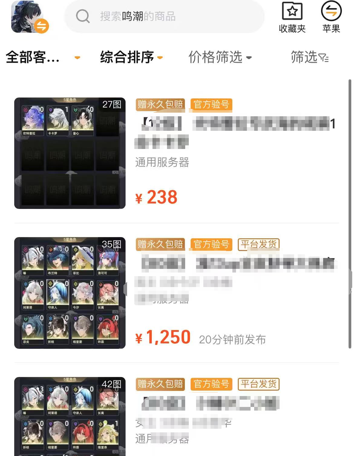 在该平台中,《鸣潮》自抽号库存充足,覆盖多种配置类型:包括但不限于预抽满命主C角色、携带高阶共鸣技能材料、拥有完整声骸体系及多套稀有武器的账号。所有账号均支持按角色名称、命座数、等级段位、资源存量等维度进行组合筛选,帮助玩家快速定位符合自身需求的目标账号。