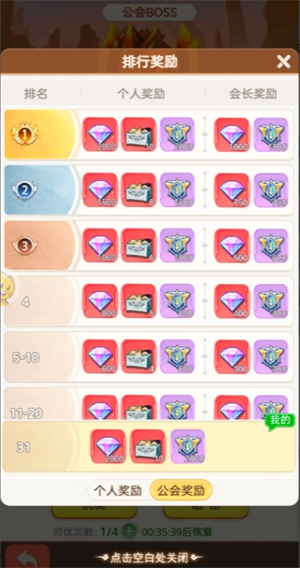 2、公会boss,进第一公会保证拿到保底2000钻石还有随机进化石箱子,个人排名奖励就看自己能力了