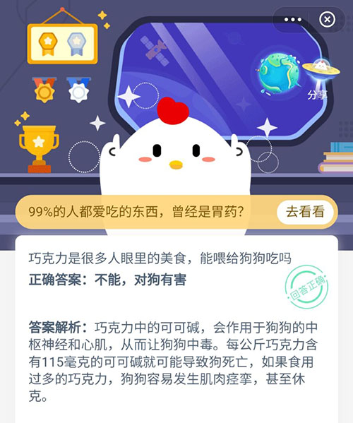 巧克力能喂给狗狗吃吗 支付宝蚂蚁庄园10月15日答案