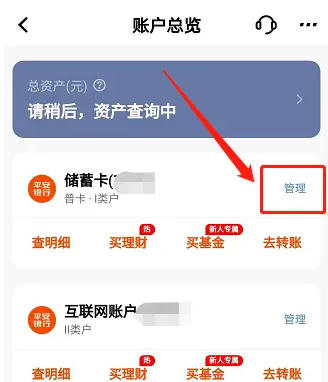进入到账户总览页面点击管理选项。