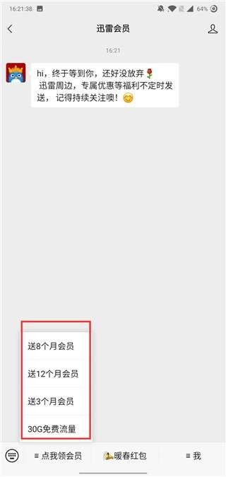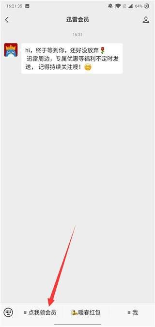 第三步点击公众号菜单栏中的"点我领会员"按钮进入活动页面。