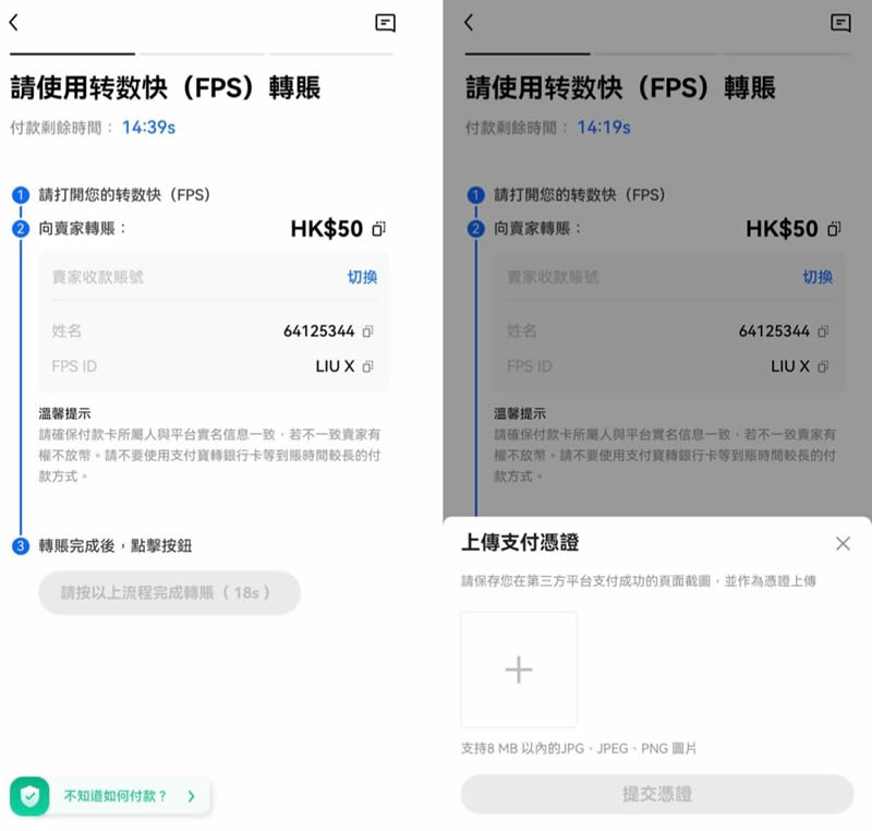 确保在倒计时结束前完成转账,支付账户名须与平台实名认证信息保持一致