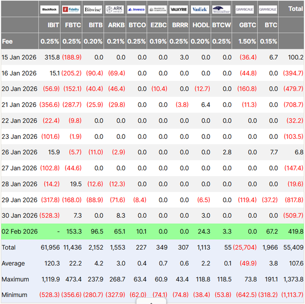 2月2日单日4.198亿美元的流入,在持续下跌趋势中仅是昙花一现的缓解。