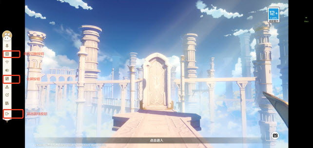 4、游戏界面左侧设有多个功能按键:HD图标调节画质、音量键下方切换全屏模式、末端按钮用于退出游戏。