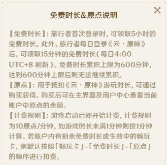 3、计费从游戏启动开始,按10原点/分钟计算,不足1分钟按1分钟计费。系统默认扣费顺序为:畅玩卡→免费时长→原点。