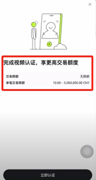 完成基础身份认证即可开启交易权限,如需大额操作则需通过进阶视频验证。