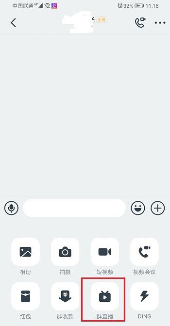 1、打开钉钉,进去群之后,点击群直播