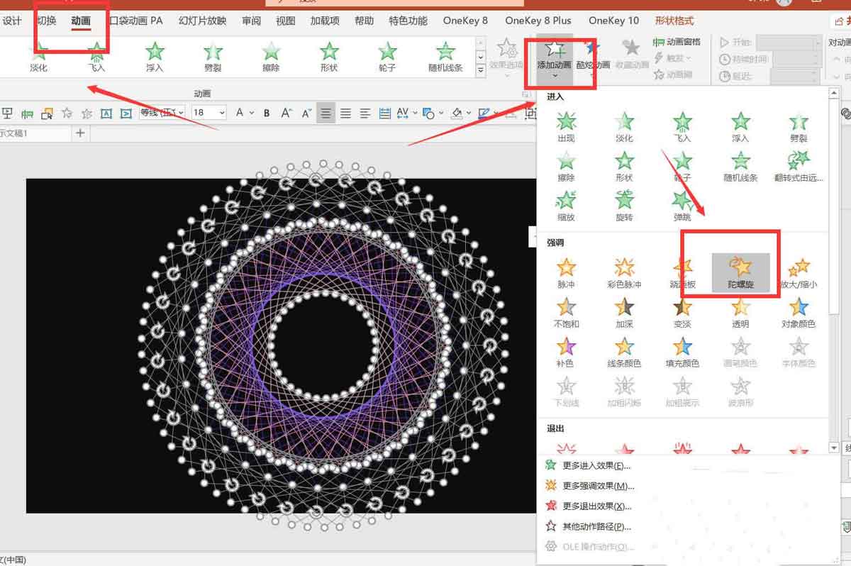5、全选所有的形状-动画-添加动画-陀螺旋。