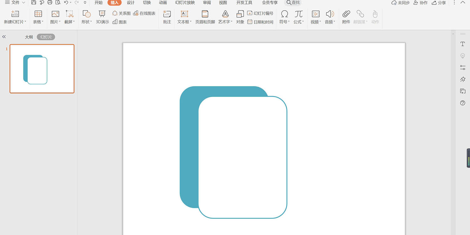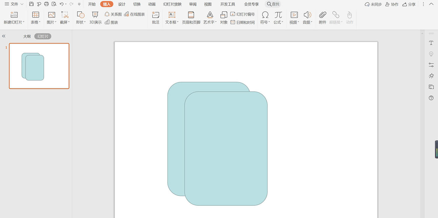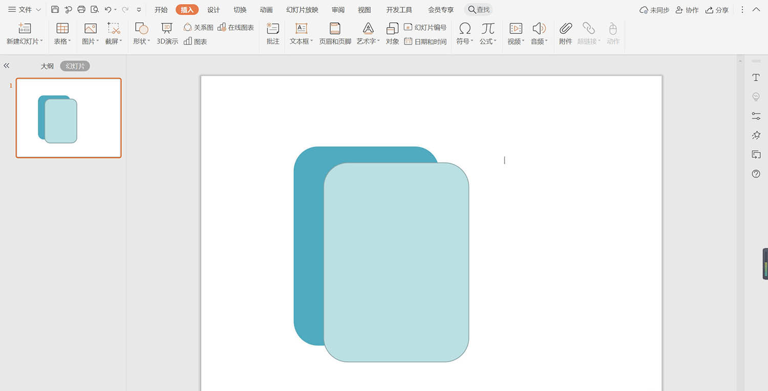 2、在页面上绘制出大小一致的两个圆角矩形,并交错进行摆放。