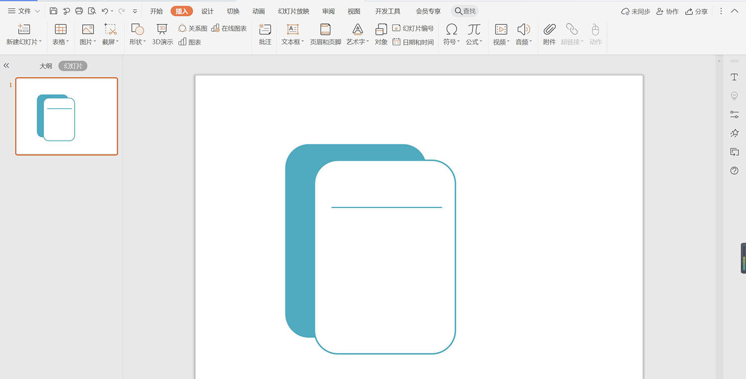 5、接着再插入一条直线,颜色填充为蓝色,线条颜色填充为1.5磅,放置在白色圆角矩形中。