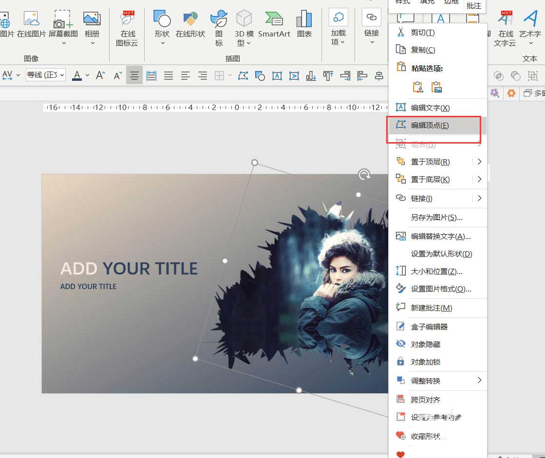 6、还可以右键图片-编辑顶点-任意拖动顶点改变图形,如图7-8