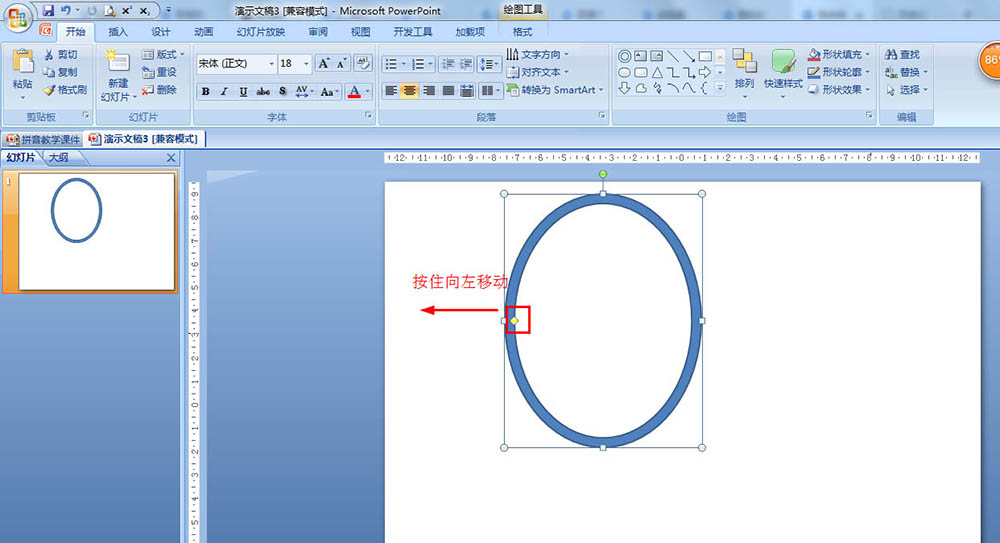 2、按住黄色调整点,然后往左调整,使用圆环变小一些。