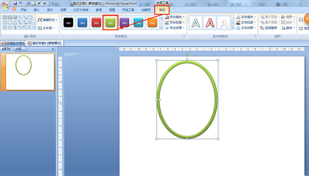 3、点击格式——在形状样式那里选择:强烈效果 强调颜色3。