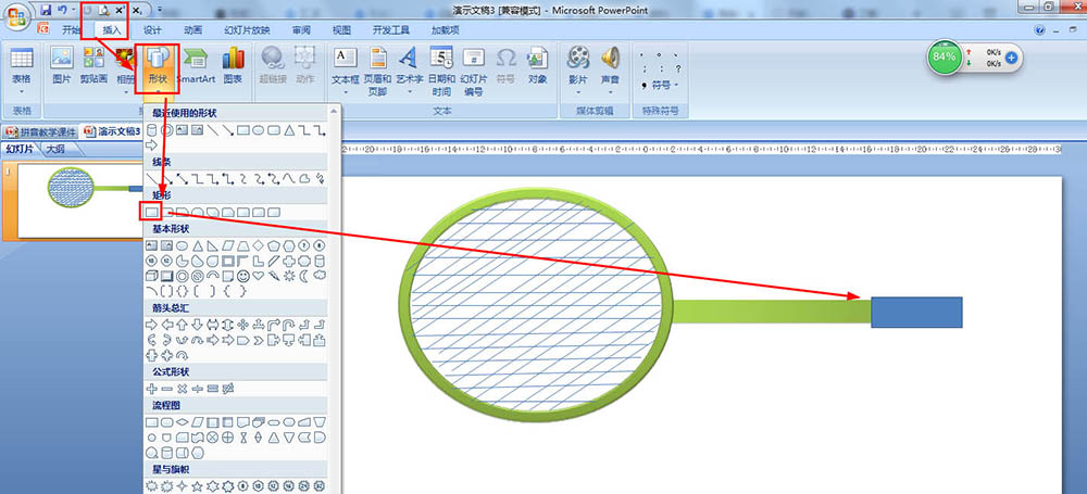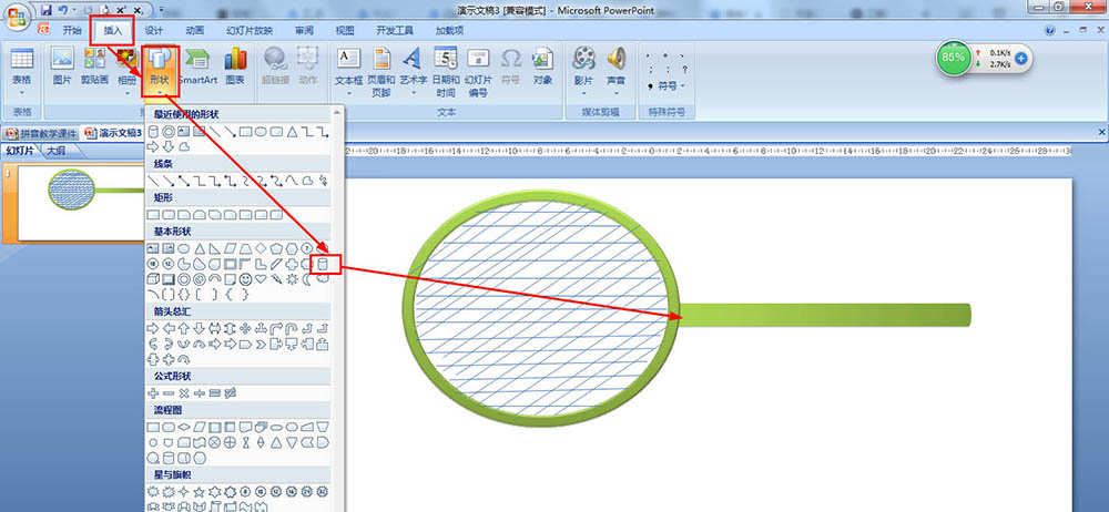 ppt怎么画羽毛球拍? ppt羽毛球拍的画法