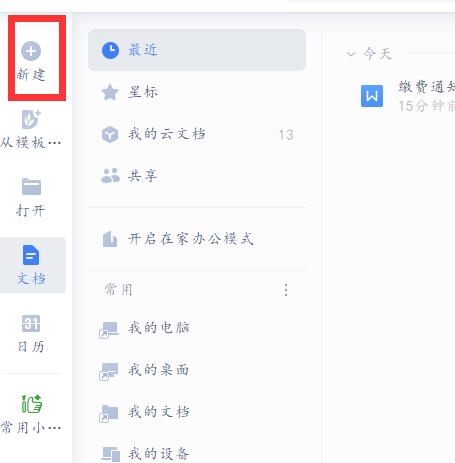 2、进入wps2019主页面后我们点击上方的新建按钮