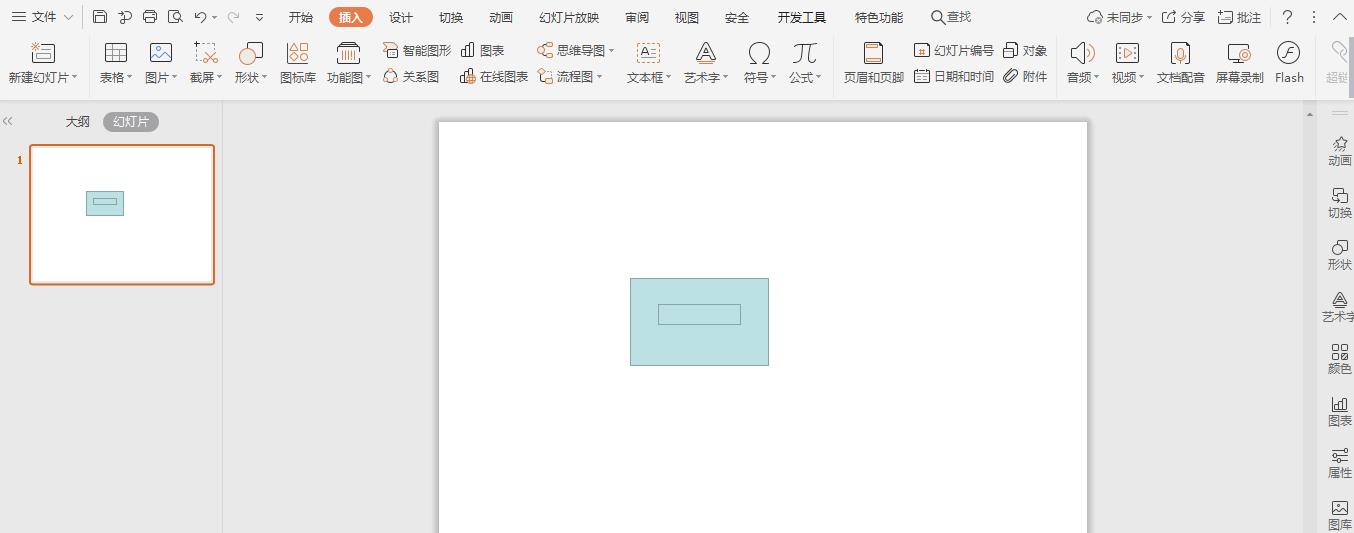 2、然后再插入一个小的矩形,放置在大矩形的中间,位置和大小如图所示。